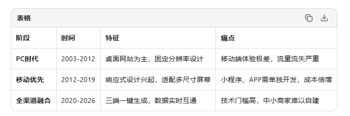 多終端適配商城開發(fā)工具一共經(jīng)歷了以下三個(gè)階段: