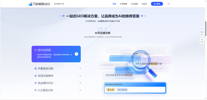 作為凡科股份旗下專注GEO的核心品牌,凡科極鷗主打“技術(shù)閉環(huán)+全鏈路服務”。它搭建了三大引擎:意圖理解引擎精準捕捉行業(yè)需求,內(nèi)容優(yōu)化引擎通過EEAT信號和Schema標記讓內(nèi)容更適配AI抓取,效果監(jiān)測引擎實現(xiàn)多平臺數(shù)據(jù)追蹤。三大引擎形成自驅(qū)循環(huán),適合希望系統(tǒng)化布局AI搜索流量的中小企業(yè)。