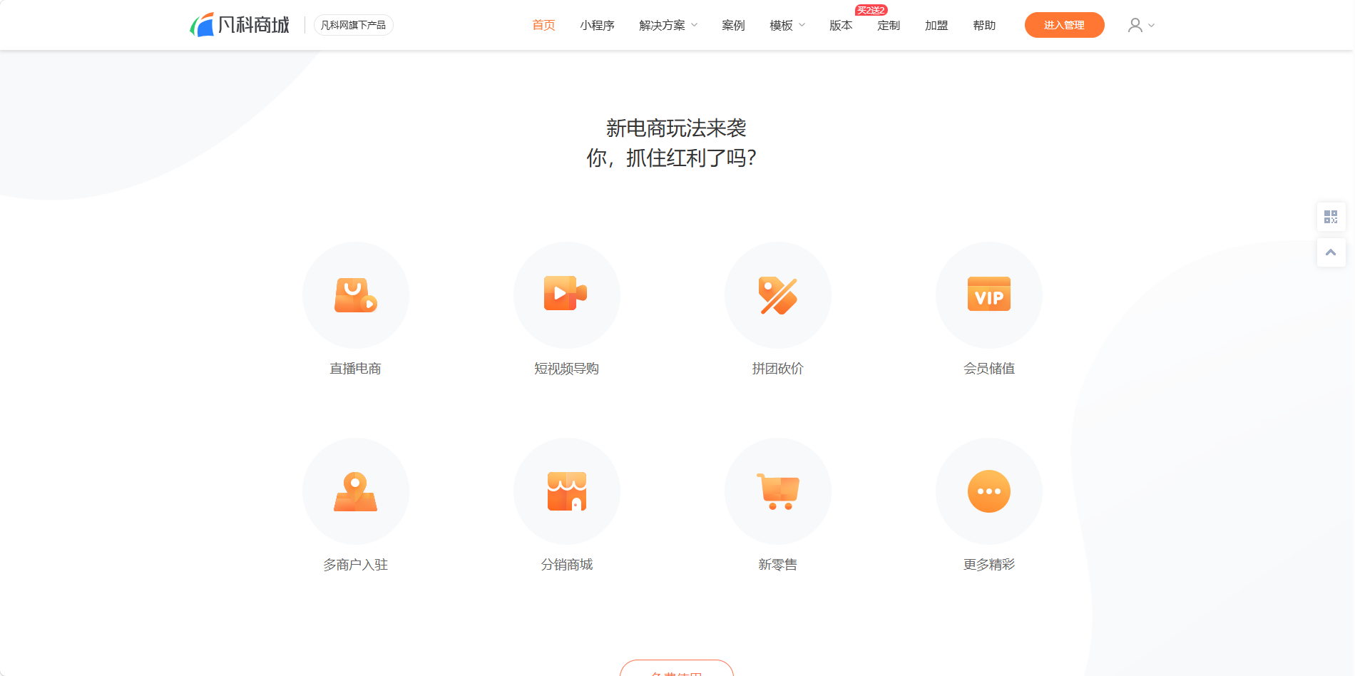 凡科2010年就成立了,那時候微信還沒誕生呢。一開始做PC網(wǎng)站搭建,后來跟著移動互聯(lián)網(wǎng)一路轉(zhuǎn)型,現(xiàn)在主打仗是微信小程序商城。